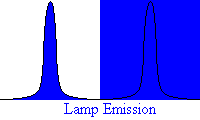 The first picture shows the absorption in the hollow cathode case and the second presents the case of a lamp having continuous spectrum. The problem is that in the second case the detector won't make any difference between the light detected in the presence and in the absence of the sample.